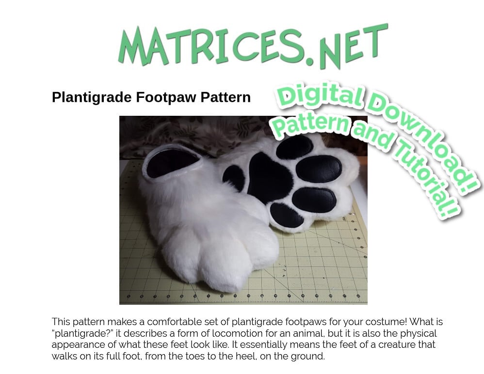This pattern makes a comfortable set of plantigrade footpaws for your costume! What is “plantigrade?” it describes a form of locomotion for an animal, but it is also the physical appearance of what these feet look like. It essentially means the feet of a creature that walks on its full foot, from the toes to the heel, on the ground.